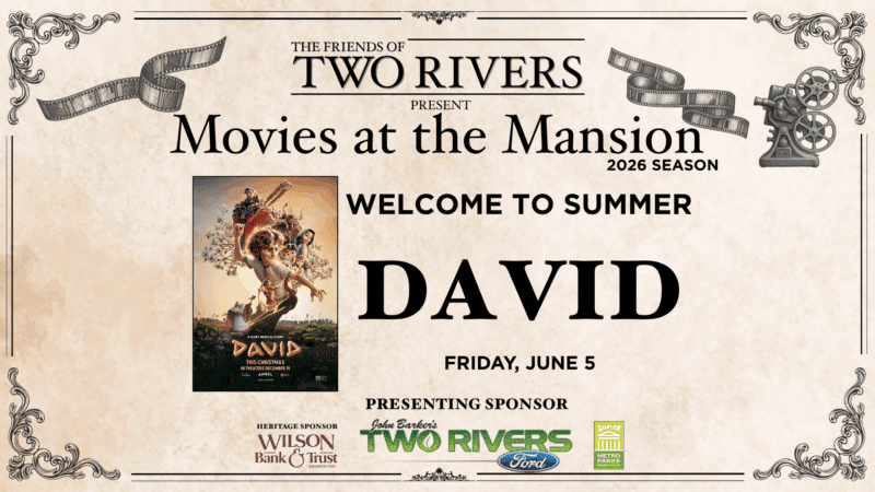 Join us on Friday, June 5 for Movies at the Mansion featuring David! Bring a chair or blanket and enjoy an evening of food trucks, yard games, popcorn, and a classic Halloween movie in a historic setting. Coolers are allowed. The Mansion grounds will be open at 5:30pm. Movie will begin as it gets darker. Tickets are $10 (or $30 max per vehicle) or $5 for Friends Members (or $20 max per vehicle).